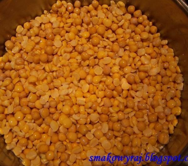 Przez jednych lubiana, przez innych nie, ale prawdę mówiąc jest tak, że gdy ktoś nam gotuje, to czasem mówimy coś w stylu: znowu to? a po pewnym czasie, zmienia nam się smak i sami zaczynamy to samo gotować. Tak było właśnie ze mną i z grochówką :)Składniki:½ kg grochu (może być cały lub łuskany. Ten pierwszy podobno zdrowszy :)ok. 3 kawałków kiełbasy śląskiej1 łyżka soli2 listki laurowe4 ziarenka ziela angielskiego1 cebula1 czubata łyżka mąki50g margarynypieprzGroch kilka razy przelewamy wodą, aż będzie czysta.