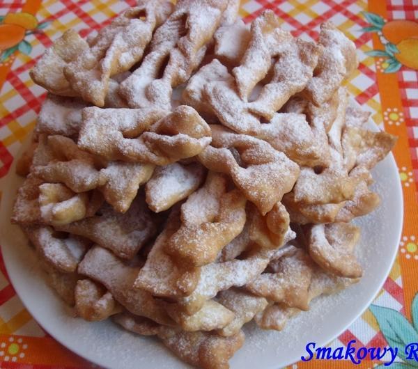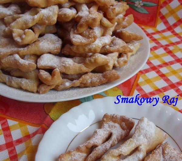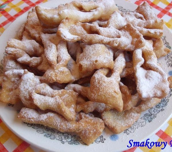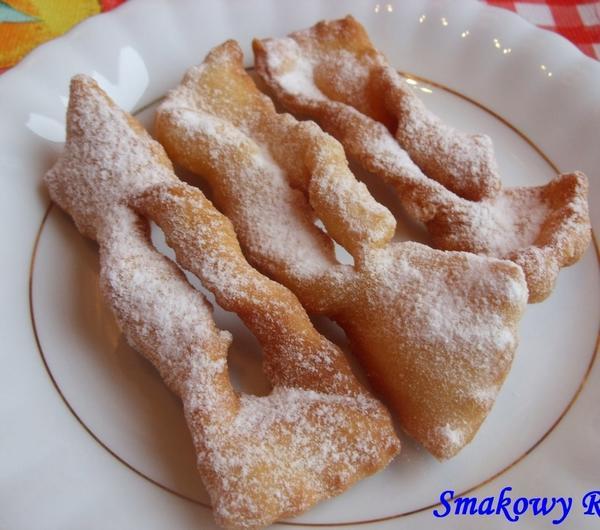 Wszystkim dobrze znane i chyba przez wszystkich lubiane, przeze mnie zwłaszcza :)Przepis pochodzi od moich rodziców, którzy nie wiem skąd go mają, w każdym razie chrusty wg tego przepisu są pieczone w mojej rodzinie już ponad 30 lat i wszystkim zawsze smakują :)a więc polecam :)
