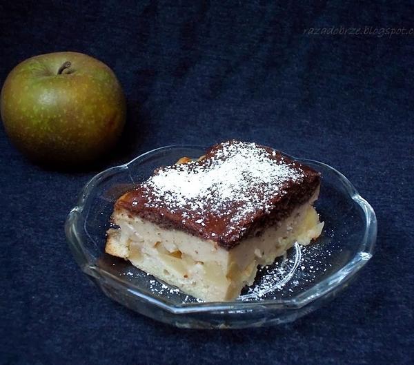 jadłam. Wszystko zamknięte w dwukolorowym cieście, z którym nawet ja dałam sobie radę bez problemu.C. stwierdził, że to ciasto jest zupełnie inne od tych, które zazwyczaj piekę. Na ciepło pochłonął dwa spore kawałki, i to tylko dlatego, że więcej nie pozwoliłam. Spróbujcie, u Was też zniknie błyskawicznie.Jabłecznik z