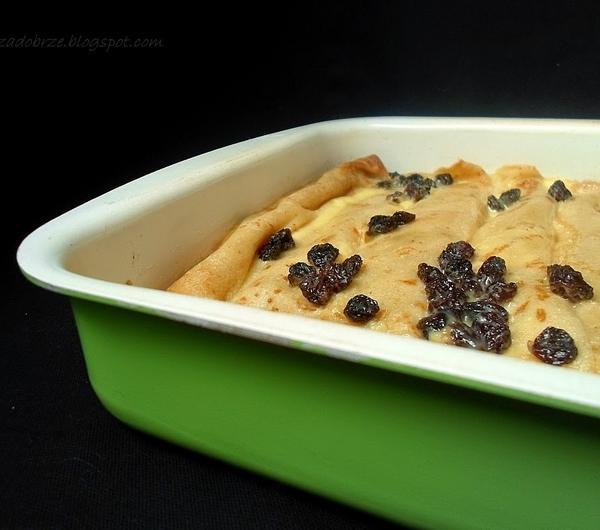 rodzynkami, polać całość sosem.Piec w 200 st. C. przez 20 minut, aż wierzch się przyrumieni.Podawać gorące.Smacznego!Koniecznie zajrzyjcie do dziewczyn - ja już się nie