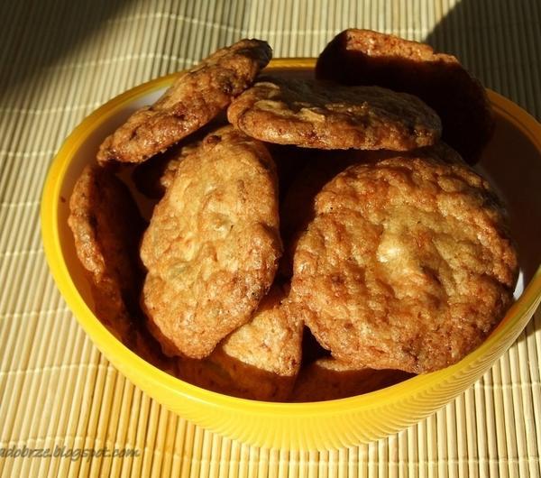 ciasteczka. Muszę powiedzieć, że wyszły pierwszorzędne! W oryginale - który znalazłam w Daniach słodkich - były z orzeszkami makadamii i tylko