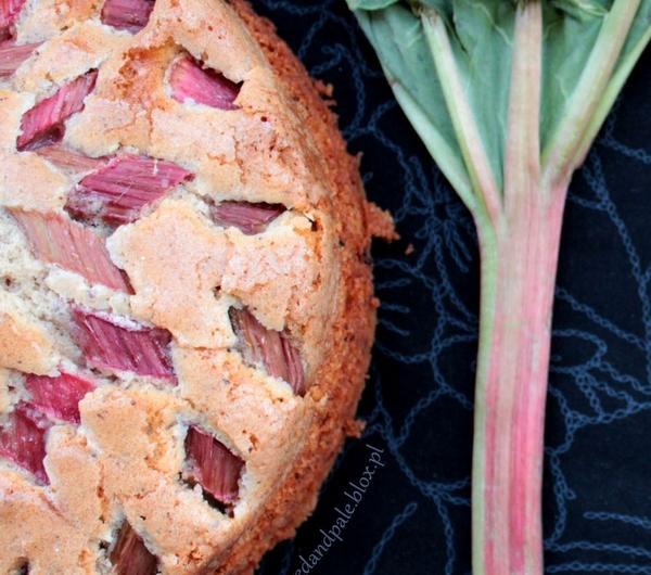 składniki na foremkę o średnicy 19cm:- ok. 2-3 łodygi rabarbaru- 150g mąki- 40g mielonych orzechów laskowych- 1 łyżeczka proszku do pieczenia- 80g miękkiego masła- 130g cukru + 1-2 łyżki do posypania- 2 jajka- skórka otarta z 1 cytryny- 100ml jogurtu naturalnego- cukier waniliowy- 2 łyżki likieru waniliowegoRabarbar umyć, osuszyć i pokroić. Masło utrzeć z cukrem i cukrem waniliowym. Mąkę wymieszać z orzechami i proszkiem. Do masła z cukrem, cały czas miksując, dodawać po jednym jajku. Zmniejszyć obroty, dodać skórkę z cytryny i likier. Na przemian dodawać mąkę i jogurt. Piekarnik rozgrzać do 180°C. Foremkę wyłożyć papierem do pieczenia lub natłuścić, przelać ciasto, rozłożyć na nim kawałki rabarbaru i lekko docisnąć dłonią. Posypać wierzch cukrem i piec 55 minut (lub do suchego patyczka). Pozostawić jeszcze na kilka minut w piekarniku, następnie ostudzić.