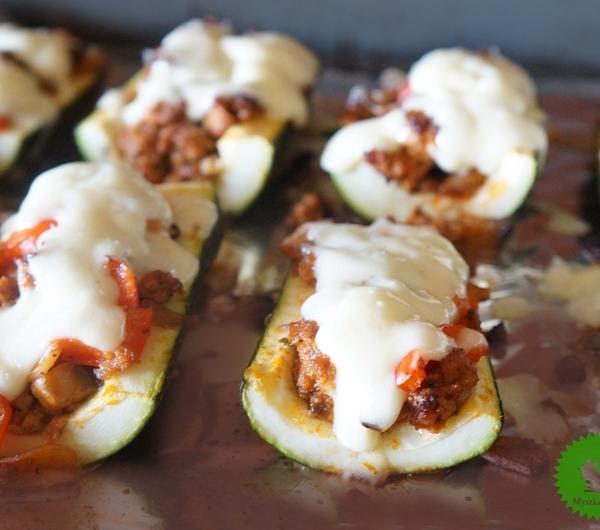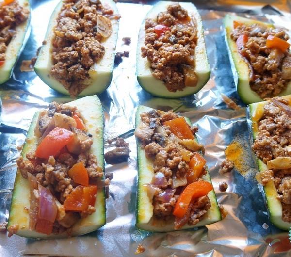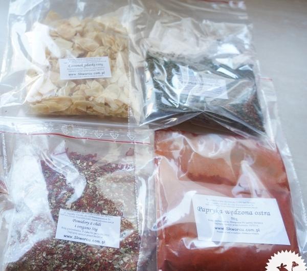 Składniki :dwie cukiniemięso mielone wieprzowe 1/2 kg ( mi dużo zostało więc wykorzystam na jutrzejszy obiad)1 czerwona papryka1 czerwona cebula7 pieczarekpół słoiczka koncentratu pomidorowego1 kulka mozzarelli ( nie z zalewy)2 czubate łyżeczki czosnku w płatkach firmy Skworcu2 łyżeczki papryki wędzonej ostrej firmy Skworcu2 czubate łyżeczki czubricy zielonej firmy Skworcu1 łyżeczka suszonych pomidorów z chili i bazylią firmy SkworcuPrzygotowanie :Mięso przyprawiam czosnkiem, papryką, czubricą i pomidorami, podsmażam na oliwie.Dodaję koncentrat i dalej smażę.Cebulę kroję w drobną kostkę - dodaję do mięsa.Pieczarki kroję w kostkę i również dodaję, mieszam i nadal podsmażam.Paprykę kroję w kostkę i gdy mięso będzie usmażone, dodaje. Mieszam i wyłączam gaz.Cukinie przekrawam na cztery. Wydrążam środek.Faszeruję mięsem.Układam na blaszce i wstawiam do piekarnika nagrzanego do 180 stopni na 20 minut.Po tym czasie, na cukinie układam startą mozzarellę i ponownie wstawiam do piekarnika.Jak ser się rozpuści - obiad gotowy!MOJA OPINIA O PRZYPRAWACH :Jest to pierwszy obiad jaki gotowałam z użyciem przypraw jakie otrzymałam od firmy Skworcu .Najbardziej ciekawił mnie smak papryki wędzonej bo kocham wszystko co wędzone , i nie zawiodłam się ! Papryka jest genialna!!!! I niesamowicie pachnie ! Inne przyprawy, które zastosowałam również mnie nie zawiodły, bardzo fajna w smaku i aromacie jest czubrica zielona . Bardzo też przypadły mi do gustu pomidory z chili i oregano , o czosnku pisać nie będę bo czosnek w płatkach jest sto razy lepszy niż granulowany i wiedziałam że mi zasmakuje.Po pierwszym testowaniu, wiem jedno ( i nie jest to podyktowane współpracą), że zamierzam zaopatrywać się u nich w przyprawy ! Mają naprawdę ogromny wybór a produkty są bardzo dobrej jakości w przystępnej cenie.Osoby, które używały przypraw tej firmy na pewno przyznają mi rację bo w internecie można znaleźć mnóstwo bardzo pochlebny opinii, osoby, które jeszcze nie miały okazji namawiam by same przetestowały by mogły uwierzyć, że pozytywne komentarze nie są "podlizywaniem się" tylko są prawdziwe.