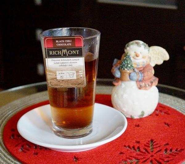 Herbata Richmont Black Chili Chocolate Rum"Rozgrzewająca jak kubańska muzyka, wyborna kompozycja czarnych herbat z dodatkiem rumu, doprawiona wyrazistą nutą czekolady i chili."To najlepsza herbata smakowa jaką piłam w życiu. Dlaczego ?po pierwsze, pachnie prawdziwą czekoladąpo drugie, nie jest słodkapo trzecie, w smaku wyraźnie czuć chilipo czwarte, bardzo mocno rozgrzewa dzięki pikantnej nuciepo piątek, całość kompozycji smakuje po prostu wybornie !!!Jej smak bardzo przypomina mi moją ulubioną czekoladę z chili firmy Lindt.Musicie koniecznie jej spróbować. Nigdy nie przypuszczałam, że może mi smakować herbata o smaku czekolady . Gdy wzięłam pierwszy łyk byłam tak mocno pozytywnie zaskoczona, że wiedziałam że to właśnie ona musi zostać szybko przeze mnie opisana.Jeśli chcecie zapoznać się z ofertą sklepu Richmont - odsyłam Was - tu - http://www.sklep.richmont.pl/ .Myślę, że takie herbaty są dobrym pomysłem na prezent. Bo kompozycje od Richmont są oryginalne i wyjątkowe.