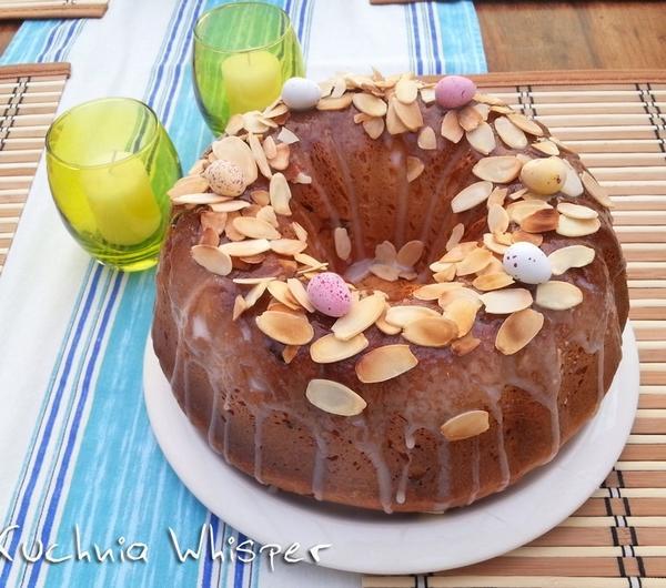 Składniki:500g mąki tortowej80g brązowego cukru1 łyżeczka drożdży250ml mleka1 łyżeczka otartej skórki z pomarańczy5 żółtek40g jogurtu naturalnego typu greckiszczypta soli2 łyżeczki esencji waniliowej100g roztopionego masła2 łyżki słodkiej śmietany5 łyżek cukru pudruPrzygotowanie:Mleko lekko podgrzać, wymieszać z drożdżami, jedną łyżką cukru i mąki. Odstawić do wyrośnięcia.Mąkę przesiać do miski, dodać cukier, sól, skórkę i wymieszać. Do wyrośniętego rozczynu dodać jogurt, żółtka i esencję waniliową. Wlać do miski z mąką i wyrobić gładkie ciasto. Następnie wlać masło i wyrobić ponownie aż ciasto wchłonie tłuszcz. Odstawić do wyrośnięcia, aby podwoiło swoją objętość.Piekarnik nagrzać do 180 C.Formę do babki posmarować tłuszczem, włożyć ciasto i zostawić na pół godziny do drugiego wyrośnięcia.Następnie babkę wstawić do piekarnika i piec ok 40 minut.Śmietanę podgrzać i wymieszać z cukrem.Wystudzone ciasto udekorować lukrem i na przykład prażonymi migdałami. Można lukier wymieszać z odrobiną grubo siekanej skórki pomarańczowej i posmarować babkę.Smacznego :)