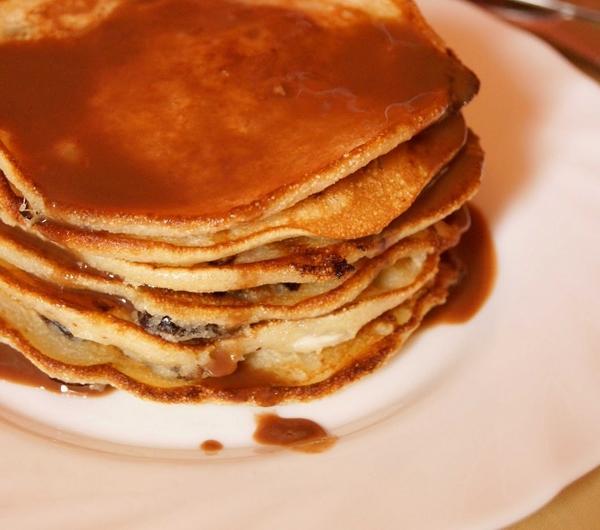 Składniki:- 1 jajko- 2 łyżki serka wiejskiego- 3/4 szklanki kaszy manny- 1/2 szklanki mleka- 1/2 łyżeczka proszku do pieczenia- 1 łyżeczka miodu- 1/2 łyżeczki cynamonu- szczypta soli- garść rodzynekSposób przygotowania:1. Wszystkie składniki wkładamy do miski i dokładnie mieszamy trzepaczką, odstawiamy na 20 min.2. Następnie placuszki smażymy na rozgrzanej suchej patelni lub z odrobiną oleju. Podajemy z konfiturą, czy polane czekoladą.