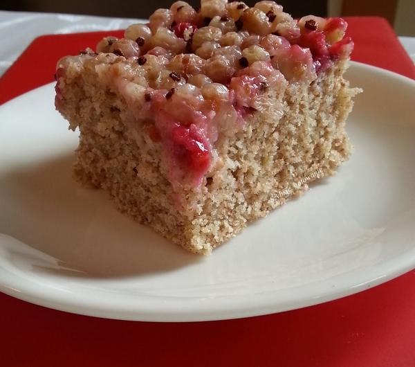 Ciasta z mąki graham jeszcze nie piekłam. Jak się okazało, to był dobry pomysł - ciasto wyszło miękkie, lekko słodkie, z kwaśnym dodatkiem owoców. Na drugi dzień odrobinę się kruszyło (następnym razem dodam więcej oleju).Składniki na dużą blaszkę:2 szklanki mąki graham (typ 1850)1 szklanka mąki pszennej (typ 650)2 łyżeczki proszku do pieczenia1/2 szklanki cukru (lub ksylitolu)1/2 łyżeczki soli3 jajka1 szklanka mleka1/2 szklanki oleju roślinnego (lepiej dać trochę więcej)1 olejek waniliowykwaśne owoce (np. porzeczki)Do jednej miski wsypać suche składniki i wymieszać.W drugiej misce połączyć: jaja, mleko, olej, olejek, a następnie masę wlać do suchych składników.Wymieszać i przełożyć do formy. Na wierzchu ułożyć owoce.Piec w 180'C przez ok. 35 minut.