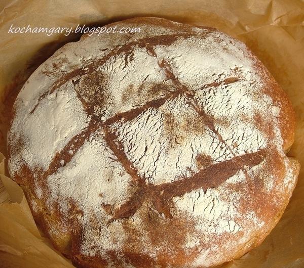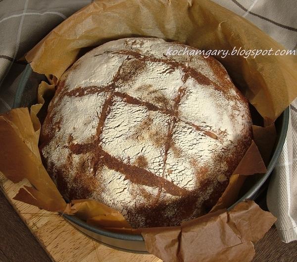 mąką lub do omączonego okrągłego koszyczka rozrostowego i pozostawiamy aż bochenek mocno wyrośnie. Czasu wyrastania nie podaję, bo zależy on od wielu czynników w domu. Kto wypieka