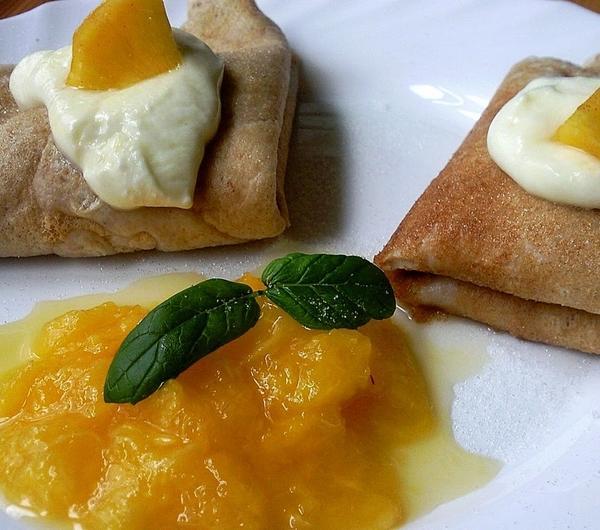 Zwyczajne naleśniki ..............dziś nadziewane serkiem waniliowym i brzoskwiniami.Naleśniki to niezwykle popularne danie i świetny pomysł na posiłek głównylub deser, a nawet śniadanie.Przepis na ciasto naleśnikowe jest niezwykle prosty i można go modyfikować na wiele sposobów/Dzięki dowolnej kompozycji składników możemy uzyskać bogactwo różnorodnych , smakowitych naleśników.