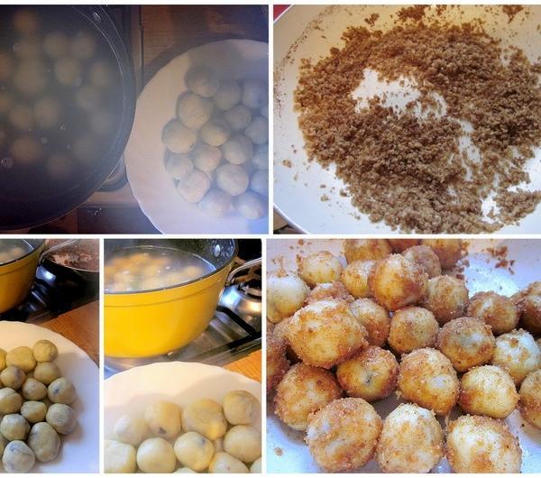 -Gorące knedle przekładać partiami na patenę i dokładnie obtoczyć w
