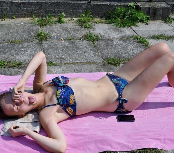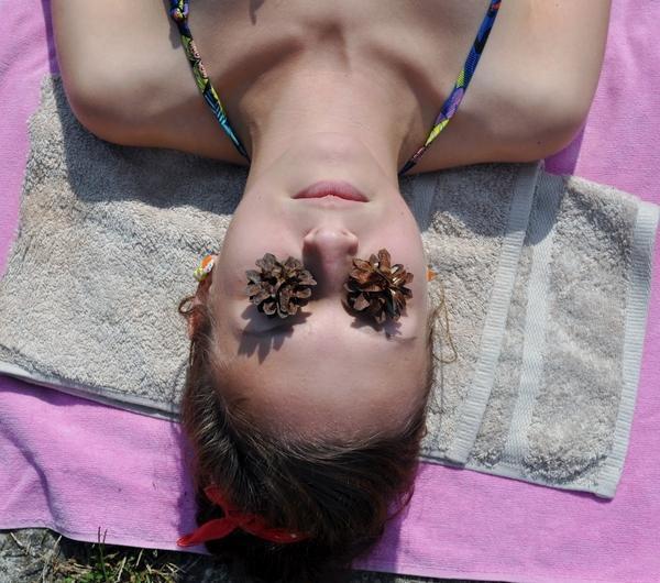 wodą tak zimną, że nawet ciężko to opisać, konkurs pływania, opalanie i zabawa z szyszkami.