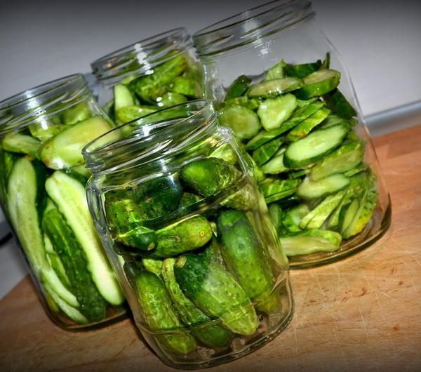 Ogórki kroimy w dowolny sposób: ćwiartki, plasterki. Jak