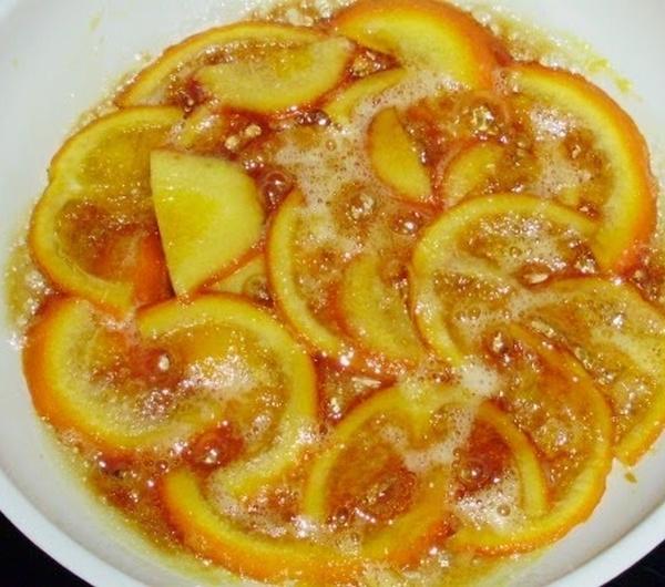 W ostatni weekend miałam trochę zachodu z przygotowaniem przyjęcia, a zwłąszcza tortu, który niedługo opiszę. Tymczasem jednak zaprezentuję samą dekorację. Dawniej gospodynie smażyły tę pyszną, niezwykle aromatyczną, słodką i ciągnącą się delicję, zupełnie inną od mdłej galaretki o pomarańczowym odcieniu, którą opakowanie dumnie nazywa skórką.Żeby zrozumieć, trzeba spróbować! Niekoniecznie teraz, gotową skórkę można zawekować i odstawić do spiżarni do Wielkiejnocy. W każdym razie ja tak robię, gdy zostają mi skórki z pomarańczy na sok do śniadania.Historyczna skórka pomarańczowaNakłuj gęsto całą pomarańczę (tylko do białego, broń Boże nie wkłuj się w soczysty miąższ!), możesz również wziąć wytłoczone z soku połówki skóry. Zalej wodą i gotuj na małym ogniu, gdy woda nabierze zielono-żółtego odcieniu i stanie się gorzka, zlej ją i nalej nowego wrzątku. Gotuj tak, zmieniając wodę co 15-20 minut przez około 2-3 godziny, w zależności od tego, czy woda wciąż jest gorzka, gdy ją odlewasz. Po tym czasie weź pomarańczę (uwaga, jest miękka, delikatna i łatwo ją uszkodzić!) i pokrój ostrym nożem w plastry lub półplasterki. Ułóż ostrożnie pojedynczą warstwą na suchej patelni, zasyp cukrem, tyle, żeby przesiąkł sokiem (gdy zobaczysz, że pozostaje suchy, przestań sypać) i smaż na małym ogniu, potrząsając patelnią. Uwaga, skórka potrafi się szybko przypalić! Ale nawet lekko przyrumieniona jest pyszna. Można dekorować nią i przekładać ciasta, lody, desery... O ile nie zostanie zjedzona od razu! ;)