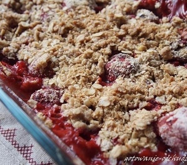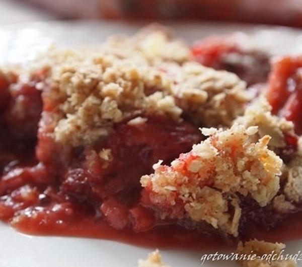 Deserowo, słodko i pysznie.Składniki1 kg truskawek1 łyzka mąki ziemniacznejKruszonka6o g masła2 łyżki płatków owsianych1 łyżka mąki pełnoziarnistej1 łyżka cukru brązowego1 łyżka wiórków kokosowychpół łyżeczki cynamonuWykonanieTruskawki pozbawiamy szypułek, myjemy, osuszamy, wykładamy do naczynia żaroodpornego i mieszamy z mąką ziemniaczaną. Wszystkie składniki kruszonki mieszamy ze sobą posypujemy nią truskawki. Wstawiamy do nagrzanego piekarnika do 180 st na około 30-40 minut.poniedziałek, 01 lipca 2013, juriel1poleć znajomemu » śledź komentarze (rss) »Komentarze