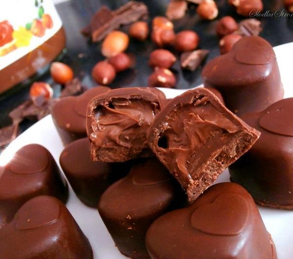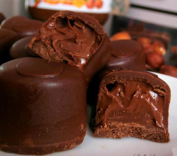 Czekoladki - mało kto ich nie lubi, a pojęcie "domowe czekoladki" brzmi niezwykle zachęcająco i myślę, że nawet antyfani pralinek się nimi skuszą....i w dodatku to nadzienie z Nutelli...Gorzka czekolada, której serce stanowi czekoladowo orzechowe nadzienie z jednego z popularniejszych kremów - połączenie idealne.