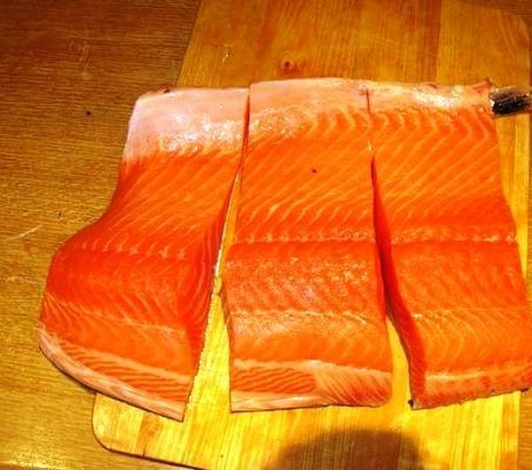 Dość dobry sposób pokazany jest tu:http://www.youtube.com/watch?v=hLbsADwTxUIFilety łososia pokroić na paski o szerokości ok. 6-8cm.