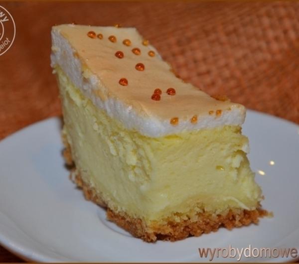 Bardzo delikatny w smaku i strukturze (nie jest zbity), a przy tym lekki, aromatyczny i niezbyt pracochłonny.Składniki:spód (placek):30 dkg mąki pszennej,10 dkg cukru,2 żółtka + 1 całe jajko,2 łyżeczki proszku do pieczenia,10 dkg margaryny (lub masła),1 łyżka smalcuMasa serowa:1 kg przemielonego sera twarogowego(może być gotowy z wiaderka),2 całe jajka+4 żółtka,1 szklanka cukru,2 szklanki zimnego mleka,0,5 szklanki oleju,1 budyń śmietankowy( najlepiej duży tzw. rodzinny),rodzynki, skórka cytrynowa, aromat (opcjonalnie i według uznania)Uwaga!! wszystkie pozostałe białka zachowujemy (będą potrzebne)Do dzieła:1. Zagniatamy ciasto na spód sernika. układamy w wyłożonej papierem do pieczenia formie (najlepiej na bokach lekko pozaginać ciasto).2. Miksujemy dokładnie wszystkie składniki masy serowej. W efekcie otrzymujemy lekko zagęszczone mleko . tak ma być i nie należy się przejmować, że jest za rzadkie.3. Masę serową wylewamy na surowy spód i całość wstawiamy do piekarnika nagrzanego do 190 stopni na 50 min.4. w międzyczasie ubijamy wszystkie pozostałe białka ze szklanką cukru na puszystą masę.5. Po upływie wspomnianych 50 min wylewamy ubite białka na masę serową i pieczemy jeszcze ok 10 min.(wierzch powinien się lekko zbrązowieć).6. Po tym czasie sernik jest już gotowy. Proponuję zostawić w formie do wystygnięcia, gdyż wtedy jest bardziej sztywny a na wierzchu pojawią się złociste krople rosy (jeśli pianę zapieczemy zbyt mocno, to kropelki nie powstaną).Tak czy inaczej sernik jest wart zachodu, tym bardziej, że nie jest zbyt pracochłonny i zawsze się udaje.