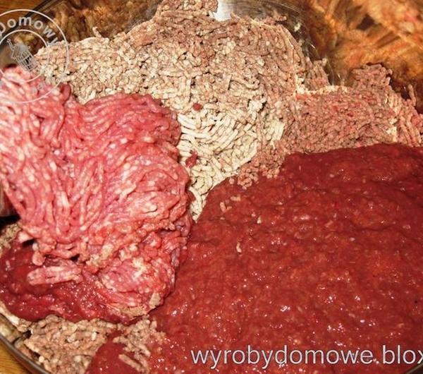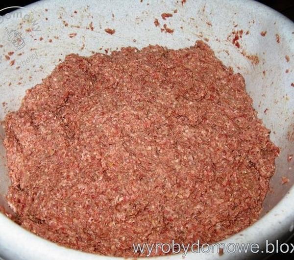 Serce i płuca pokrajać i pogotować ok 30 min w wodzie.Wystudzić i zemleć na najdrobniejszym sitku. Wątrobę surową zemleć na najdrobniejszym sitku z dodatkiem