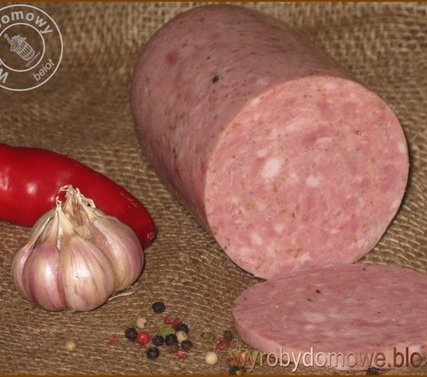 Wzorowałem się na przepisie Dziadka z WD, ale szukałem swojego smaku i troszkę przepis zmodyfikowałem, jak często to robię. Nazwa pozostała.Składniki:- mięso wieprzowe kl II (wybierałem raczej chude) 4kg- mięso wieprzowe kl III (z golonek) 0,5kg- mąka 30-50g/kg, ja dałem pszenną graham, może być z pełnego przemiału lub ziemniaczana, tylko pozostają otręby widoczne na foto, jak komuś przeszkadza to wg. uznania- pieprz 1g/kg- ziele angielskie 0,5g/kg- gałka muszkatołowa 0,5g/kg- osłonki barierowe lub słoiki- peklosól 18g/kgMięso pokroić w kawałki i kl. II zemleć na sitku 8mm, a kl. III zemleć na sitku 2-3mm. Dodać peklosól, wymieszać i pozostawić w lodówce na 48h. Następnie wyjąc wymieszać, dodając max 10% wody oraz przyprawy i mąkę.Napełnić słoiki lub osłonki.Parzyć w temp ok. 75 stopni 1h 45 min. Ostudzić i zajadać. Wyrób dość chudy, twardy, zwięzły, bez galaretki, smaczny. W temp. ok 6 stopni można przechowywać ok 2 tyg. max.czwartek, 24 października 2013, beiotpoleć znajomemu » śledź komentarze (rss) »TrackBackOstatnie wpisyMielonka z dziczyzny – ...Peklowanie zalewowePeklowanie suche, soleniePolędwiczki z warchlakaPolędwica i szynka z jeleniaChlebek orkiszowy WiesławaMój prezent gwiazdkowy 2015Pasztet myśliwegoRosół z kaczkiDzika kaczka wędzona_________________________ ____________________________________________________ __________________________ Licznik gości ____________________________ On-line: _________________________Smaczne Zdrowe Wyroby DomoweWypromuj również swoją stronę ____________________________________________________ __________________________ __________________________ __________________________ __________________________ Zdjęcia i teksty na tej stronie są mojego autorstwa i zabrania się ich kopiowania, powielania i wykorzystywania do celów komercyjnych bez mojej zgody!!! Wykorzystanie przepisów oraz instrukcji mojego autorstwa znajdujących się na tym blogu w celach komercyjnych wymaga zgody autora!!!design by SenTineL Wood.nPisz blogzamów newsletter
