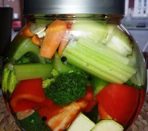 - szklanka octu,- 5 szklanek wody,- 7 łyżek cukru- 2 łyżki soli,- liść laurowy,- parę kulek ziela angielskiego,- pieprz czerwony, zielony i czarny,Wszystko zagotować. Do słoika wpakować seler pocięty i zalać gorącą zalewą po zakręceniu obrócić słoik do góry dnem.Prawie otworzyłem słoik i powiem masakraaa bardzo dobre;))) polecamW podobny sposób robimy też mix jak na foto
