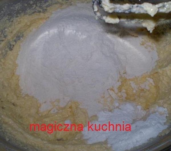 proszkiem do pieczenia porcjami dodajemy do masy.