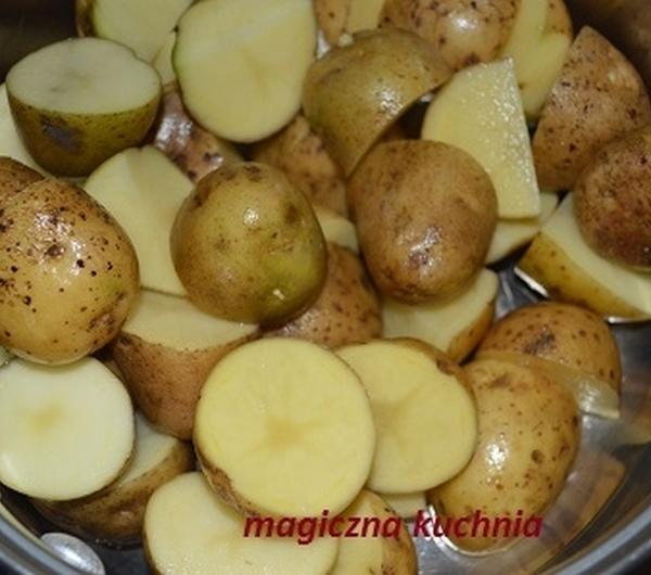 Do tego przepisu najlepiej nadają się małe ziemniaczki , ale jak nie macie to duże przekrojone na połówki też są pyszne. Co do