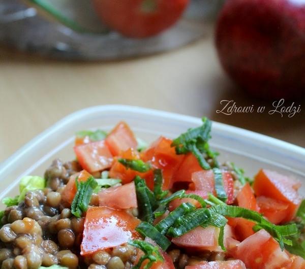 Wskazówki do przyrządzania sałatki:Nie dodałam do niej żadnej przyprawy, ponieważ soczewica była konserwowa a więc odrobinę słona,a ostrości nadaje szczypiorek. Z pomidorami świetnie łączy się smakowo oliwa z oliwek, stąd dodatek przypraw był niepotrzebny.Wartość odżywcza 1 porcji:Energia: 252 kcalBiałko: 12,5 gWęglowodany: 30 , 6 gTłuszcze: 11 , 7 gBłonnik: 6 , 3 g