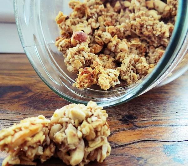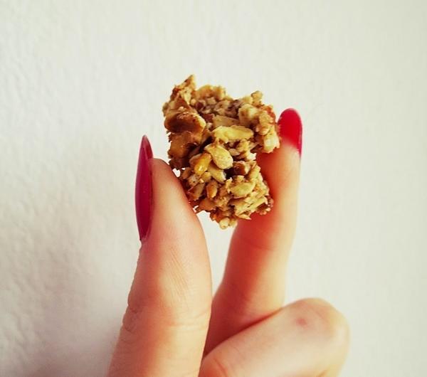 płatków, dodać pozostałe składniki i wymieszać dłonią- masa powinna być lekko kleistaMasę rozprowadzić cienko na blasze z papierem do pieczenia, całość przyklepać dłonią, aby było jak najbardziej "zbite" i piec w piekarniku nagrzanym do 180°CPo 15 minutach wyjąć blachę i łyżką przemieszać całość dzieląc na drobne kawałki, tak, aby powstało crunchyPonownie wstawić do piekarnika, zmniejszyć temperaturę do 150°C i piec około 20-30 minut do uzyskania odpowiedniej chrupkości- najlepiej co jakiś czas sprawdzićSmacznego!www.facebook.com/peanutbuttermonsterblog