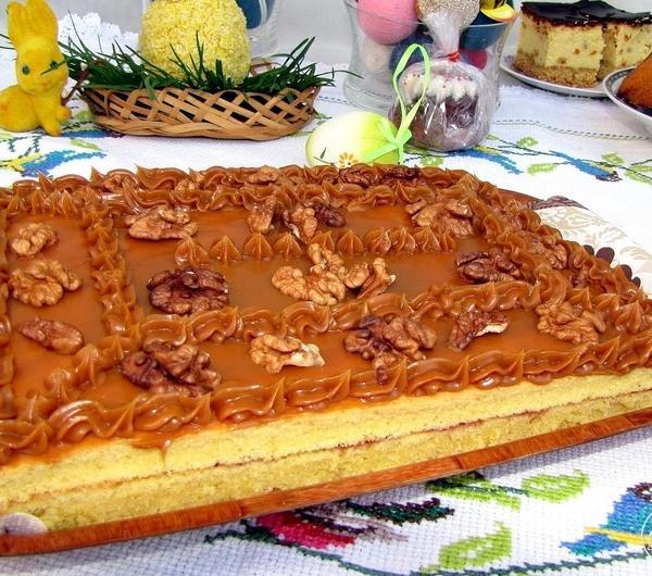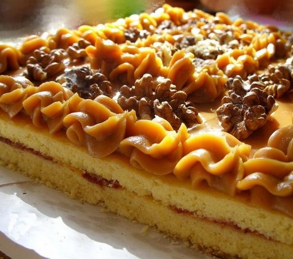 170 g mąki150 g cukru2 jajka125 g margaryny Kasiapół cukru waniliowegododatkowo;dżem truskawkowymasa kajmakowa orzechowa 1 puszka 400 grorzechyMargarynęcukier i jajka utrzeć dodać mąkę i zmiksować (ciasto będzie gęste)rozsmarować ciasto w dużej blasze albo w dwie małe.. (na papierze)upiec na złoty kolorPo wystudzeniu (jeśli było pieczone w jednej, przekroić na pół) ciasto przełożyć dżemem truskawkowym, rozsmarować cienką warstwę masy kajmakowej, resztę przełożyć do szprycy i udekorować masą i orzechamiOpublikowany w