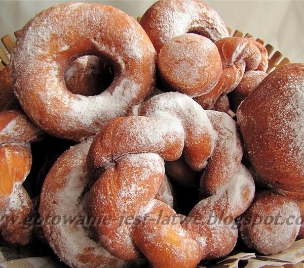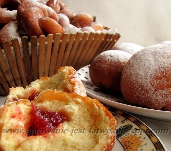 marmoladąodstawić do wyrośnięcia... smażyć w rozgrzanym tłuszczu.. na koniec posypać