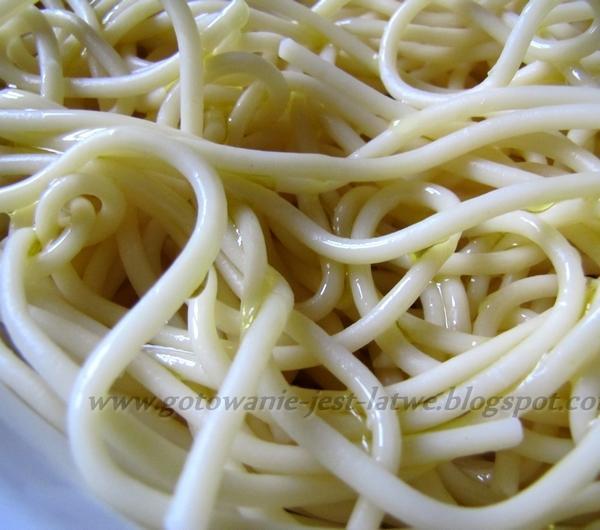 Makaron ugotować al'dente odcedzić i opłukać w zimnej wodzie odstawić do osączenia.