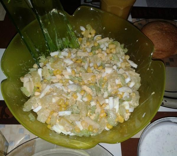 sałatkę, nazwijmy ją "Żółtodzioba", jest delikatnie inspirowany wpisami na różnych forach, ale w większości jest jednak autorski.Składniki:=> puszka