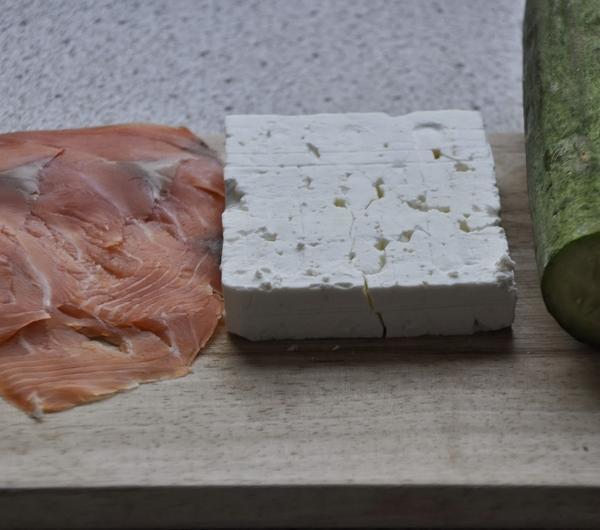 feta cheese, salmon and cucumber