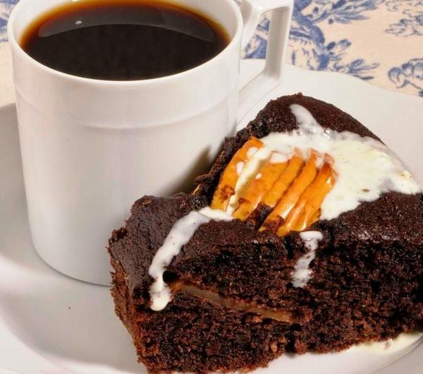 potrzebujemy:- filiżankę kakao- filiżankę soku z czarnej porzeczki- 1.5 filiżanki mąki ryżowej (lub innej bezglutenowej)- opakowanie proszku do pieczenia- 1/3 filiżanki oleju- 1/3 filiżanki cukru- 4 jajka- kawałek startego imbiru plus 2 łyżki syropu imbirowego- 3 jabłka (pokrojone na kawałki)W garnku podgrzać sok, kakao, olej i cukier aż powstanie jednolita masa.Całość ostudzić, dodać jajka, imbir, mąkę i proszek.Wymieszać.Przenieść do formy, na wierzchu ułożyć pokrojone w kawałki jabłka.Piec ok 30-40 minut w 160 stopniach z termoobiegiem.