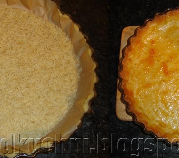 ryż. Tak przygotowany spód piecz w 190 stopniach przez 15 minut. Po tym czasie usuń papier z obciążeniem i zapiekaj jeszcze ok 7-9 minut do lekkiego zbrązowienia