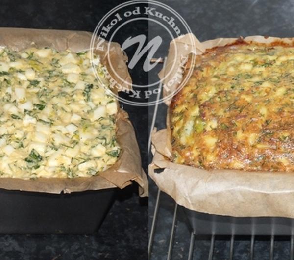 Na koniec wyłóż resztę masy jajecznej. Piecz w 190°C przez 70 minut. Studź w blaszce. Można podawać na zimno i na ciepło.