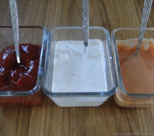 przyprawami mięso. Odstawić na co najmniej 1h. W tym czasie przygotować sosy mieszając wszystkie składniki.