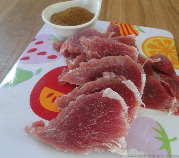 Mięso dzień wcześniej zamrozić. Wyjąć na 2-3 h przed przygotowaniem, ale nie można dopuścić do rozmrożenia. Jeszcze zmrożone bardzo