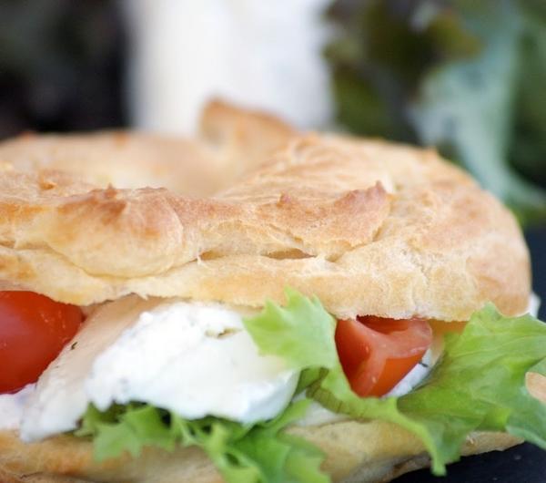 Ptysie według Rachel Khoo, autorki książki Mała Francuska Kuchnia.Składniki:125 ml wody125 ml mleka10dag masłaszczypta soli1 łyżeczka cukru17dag mąki przesianej4 średnie jajkaWlej wodę z mlekiem do rondla i dodaj masło, sól i cukier. Postaw na dużym ogniu i poczekaj aż masło się stopi. Wsyp mąkę, mieszaj energicznie aż uzyskasz gładkie lśniące ciasto które nie lepiąc się odchodzi od brzegów rondla.Zdejmij z ognia i wciąż mieszaj aż ciasto będzie chłodne w dotyku.Wbijaj po jednym jajku nie przerywając mieszania. Gdy masa będzie gładka i lśniąca, przełóż ją do worka cukierniczego i wylej na blachę wyłożona papierem do pieczenia krążki przypominające bajgleRozgrzej piekarnik do temp 180' i piecz 20-25 minut. aż ciasto wyrośnie i się zarumieni.Nadzienie:15dag brie de Meaux lub innego sera brie pokrojonego na plastry2 małe jabłka poszatkowane (pominęłam)10 dag liści młodego szpinaku lub innej sałaty,Mus musztardowy:50 ml śmietany kremówki (ja dałam majonez z jogurtem)łyżka musztardy z ziarnem gorczycy1 białko (pominęłam)Przygotowanie:Ubitą śmietanę wymieszaj z musztardą delikatnie, ubij na sztywno białko i połącz ze śmietaną, przełóż do worka cukierniczego. Upieczone ciasto przetnij na krążki w poziomie na pół. Dolne połówki przykryj plastrami sera brie a potem jabłkiem. Wyciśnij na jabłka śmietanę, połóż szpinak i przykryj górną połową ciasta. Podawaj od razu :-)Wymieszałam jogurt z majonezem, dodałam musztardę i takim sosem smarowałam przekrojone ptysie. Ułożyłam na to sałatę, plastry sera i ćwiartki pomidorków koktajlowych.Pycha!:-)Zapraszam na ptysiowe śniadanie do:Małgosi z bloga Smaki AlzacjiKingi z bloga Małe kulinariaPaweł z bloga Chleby infoEwelina z bloga Stylowa kuchnia