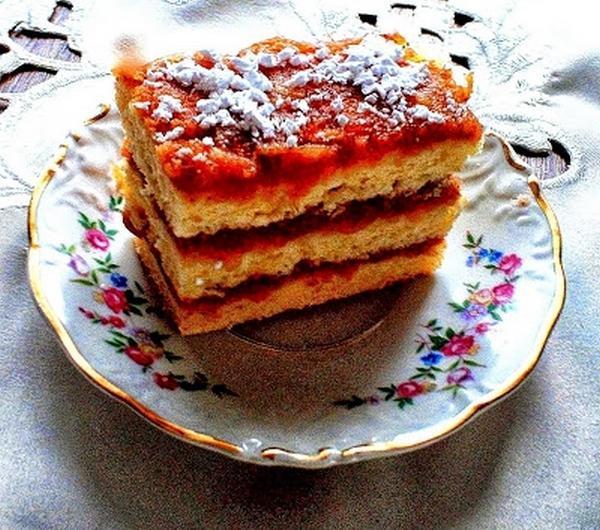 Szarlotka na delikatnym cieście biszkoptowym, przypominająca szarlotkę na zimno. Doskonale sprawdzi się także jako alternatywa, klasycznej szarlotki na kruchym cieście .