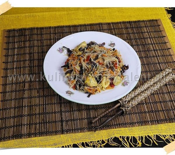 wody.Mieszankę chińską podsmażamy w woku, dodajemy do niej dodatkowo pokrojone w cienkie paski
