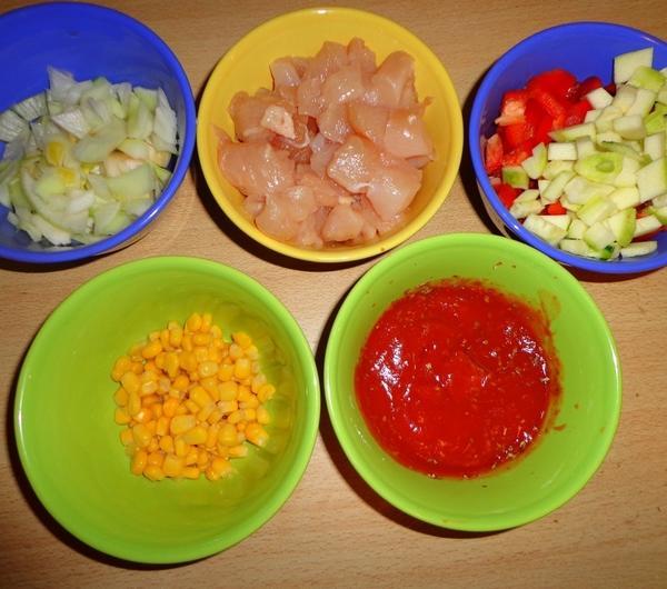 Pamiętacie przepis na erasmusową tortillę ? Dzisiaj mamy dla Was kolejne dwie propozycje, w których też wykorzystamy tortillę, ale jej wnętrze będzie jeszcze bogatsze. Za bazę do obu dzisiejszych wersji posłużą nam te same składniki, ale to użyte sosy sprawią, że ich smak będzie się znacznie różnił między sobą:) Zapraszamy do wypróbowania!Porcja dla 2 osóbSkładniki:4 duże placki tortilli4-5 plasterków sera żółtegoSkładniki potrzebne do farszu:-1 filet z kurczaka-1 mała puszka kukurydzy-1/2 papryki-1/2 dużej cebuli-1/3 cukiniiSposób przygotowania farszu:1. Kroimy wszystkie składniki2. Na rozgrzaną patelnię wkładamy pokrojony w kawałki filet z kurczaka. Smażymy do czasu aż się ładnie, lekko przyzłoci.3. Do kurczaka dodajemy paprykę, cebulę i cukinię. Wszystko razem smażymy do póki nie zacznie powoli mięknąć. Dodajemy kukurydzę. Wszystko mieszamy i zdejmujemy z ognia.Sos 1- Pomidorowo-ziołowy150g pomidorów w kartonie1 łyżeczka suszonego oregano1 łyżka suszonych ziół prowansalskich1/2 łyżeczki soli1/2 łyżeczki pieprzuSos 2- czosnkowy100g jogurtu greckiego1 ząbek czosnku1 łyżka majonezupieprz i sól do smaku1.Na dużej blasze od piekarnika układamy placki tortilli, smarujemy sosami: 2 placki czosnkowym, 2 pomidorowo-ziołowym.2. Na pokrytych sosem tortillach równomiernie układamy farsz, posypujemy startym seremżółtym na wierzchu. Skręcamy w rulony3. Wkładamy na ok. 5 minut do piekarnika rozgrzanego na 200 stopni.Smacznego!