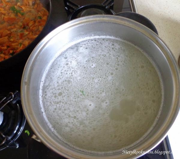 ryż się zagotuje to solimy ją dwie łyżeczki i dolewamy łyżkę