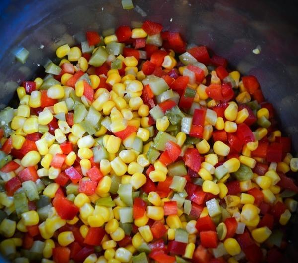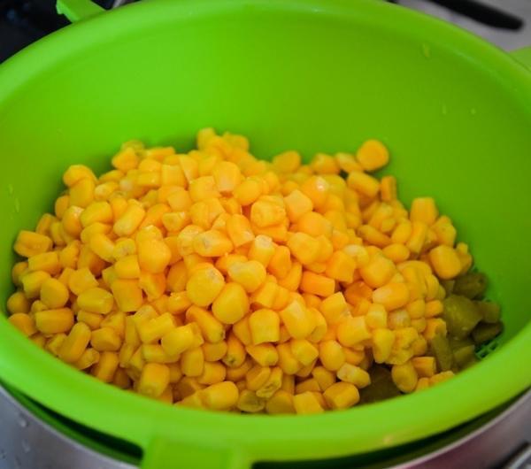 4. Na sitko wysypujemy kukurydzę z puszki, dokładamy do tego ogórki i czekamy aż odpłynie z nich zbędna woda.