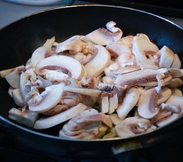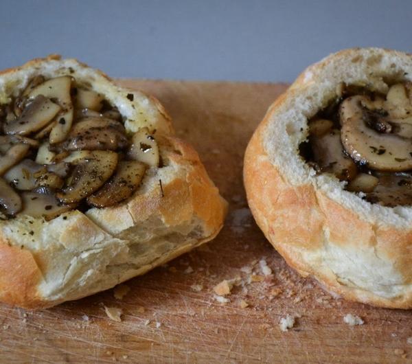4. Do tak przygotowanych kajzerek wkładamy usmażone pieczarki.