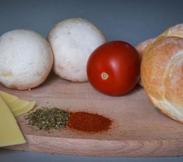 Składniki:- dwie kajzerki lub jedna duża bułka; 0,80 zł- pare pieczarek ok. 7 średnich; ok. 2 zł- 3 plastry sera żółtego; 1,60 zł- jeden mały pomidor; ok. 1 zł- szczypta oregano lub innych ulubionych ziół- szczypta papryki ostrej- sól i pieprz do smakuCzas przygotowania: 20 min.Koszt: ok. 6 złPrzygotowanie:1. Pieczarki dokładnie myjemy, kroimy w plasterki lub drobniej.