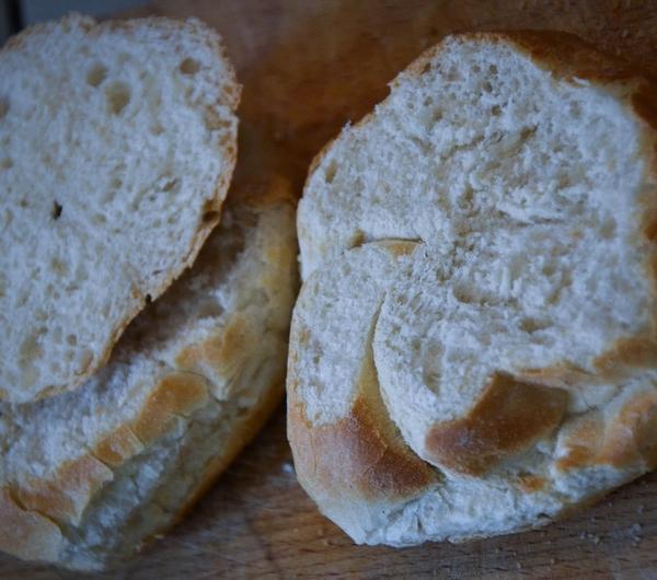 3. W tym czasie z kajzerek odkrawamy samą górę, następnie wydrążamy środek bułeczki.
