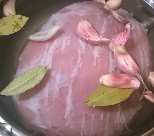 Następnie umieścić w naczyniu żaroodpornym z pokrywą lub w rękawie foliowym.Wstawić do nagrzanego piekarnika i piec w temperaturze 190 stopni,ok. 1,5 godziny. Po wyjęciu z piekarnika mięso zawinąć w folię aluminiowądo całkowitego wystudzenia jeżeli mięso będzie podawane na zimno.