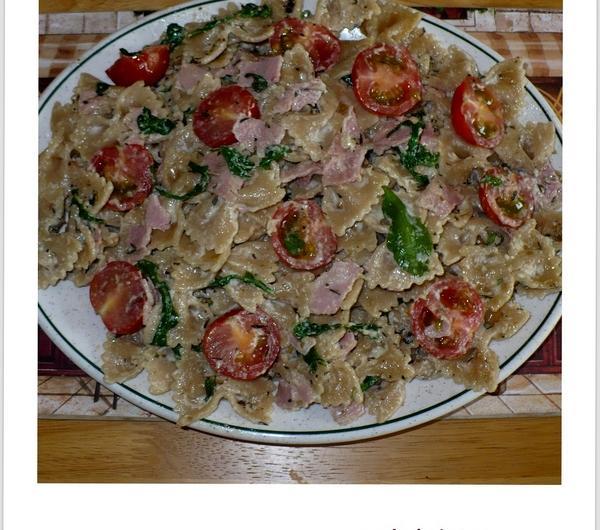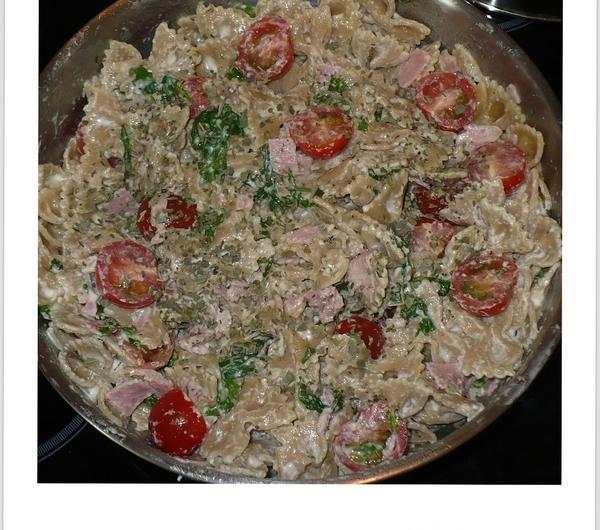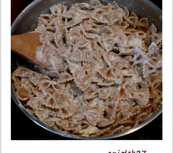 makaronowo-serowej. Dokładnie mieszałam. Pod koniec duszenia dodałam jeszcze umyte i przekrojone na połówki