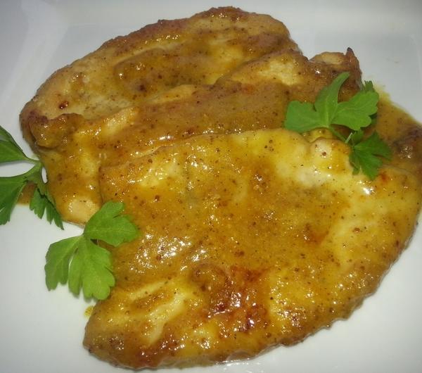 Składniki:- 500g piersi z indyka,- musztarda (1/2 słoika),- miód (5 łyżek),+ jeśli musztarda nie jest zbyt ostra, można jeszcze użyć soli i pieprzuPierś z indyka pokroić na kotlety, jeśli są grube, rozbć tłuczkiem. Umyć i osuszyć (można przyprawić). W miseczce wymieszać musztardę z miodem, przelać do naczynia żaroodpornego. Kotlety po kolei obtaczać w sosie musztardowo-miodowym, a następnie wstawić do rozgrzanego piekarnika do 200 º C. Piec przez 25-30 minut.